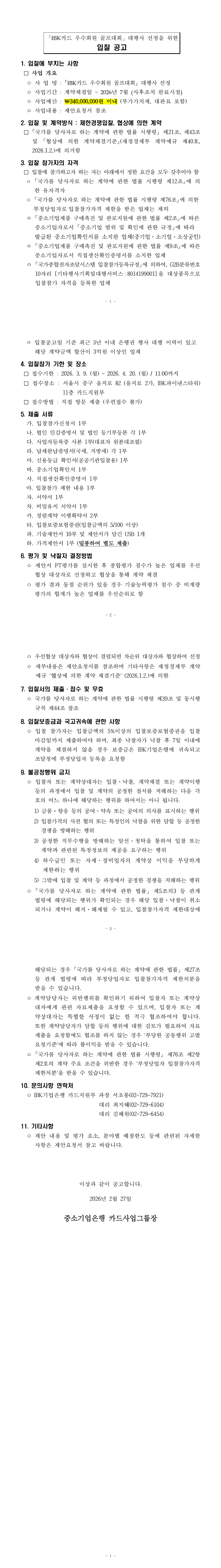 IBK카드 우수회원 골프대회 대행사 선정 |