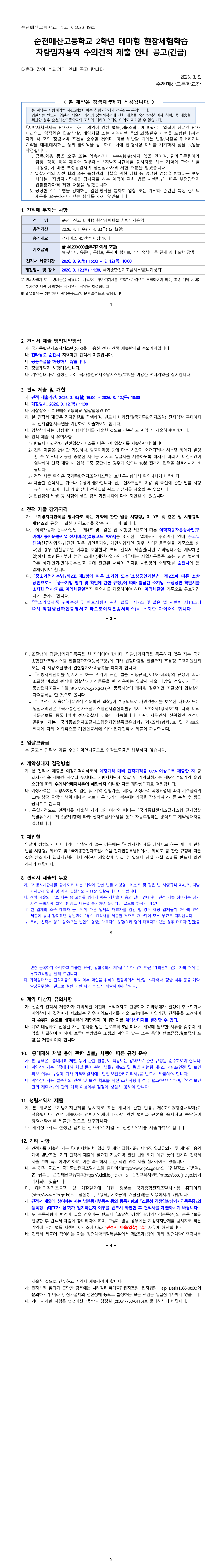 순천매산고 2학년 테마형 현장체험학습 차량임차용역 수의견적 제출 안내 공고 |