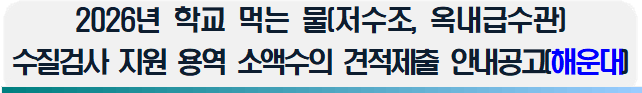 2026년 학교 먹는 물(저수조, 옥내급수관) 수질검사 지원 용역(해운대)