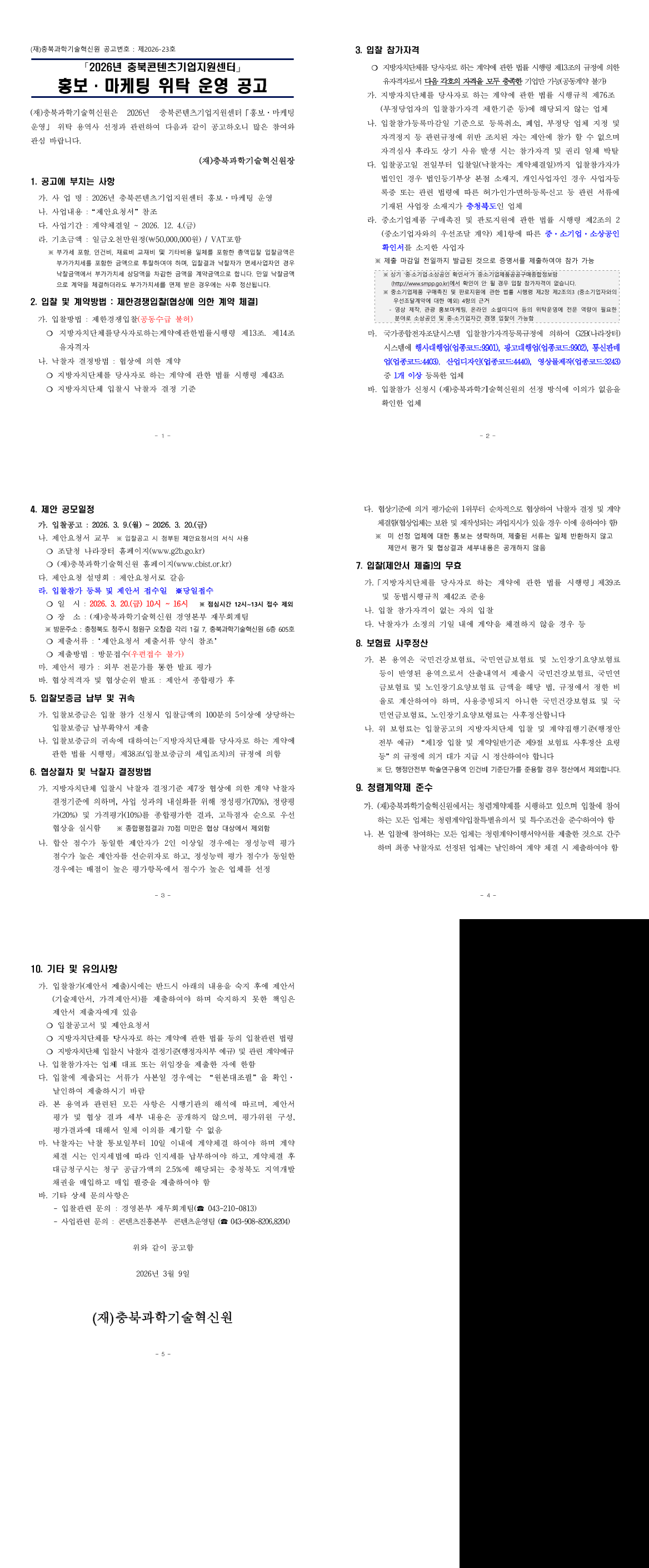2026년 충북콘텐츠기업지원센터 홍보·마케팅 운영 용역 |