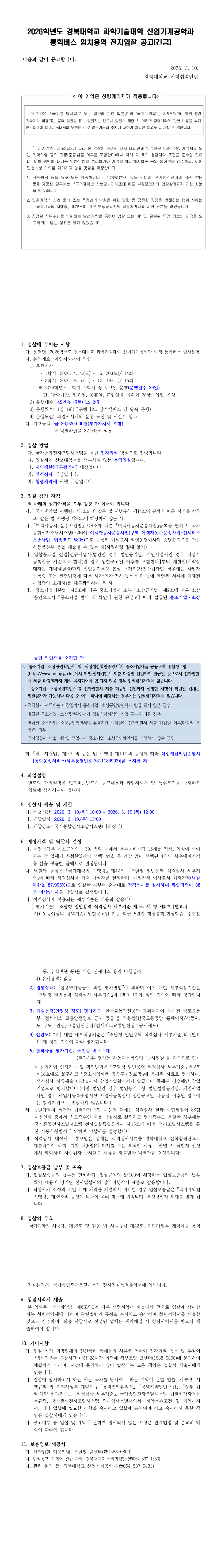 2026학년도 경북대학교 과학기술대학 산업기계공학과 학생 통학버스 임차용역 |