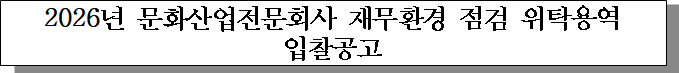 ㅇ 입찰건명 : 2026년 문화산업전문회사 재무환경 점검 위탁용역