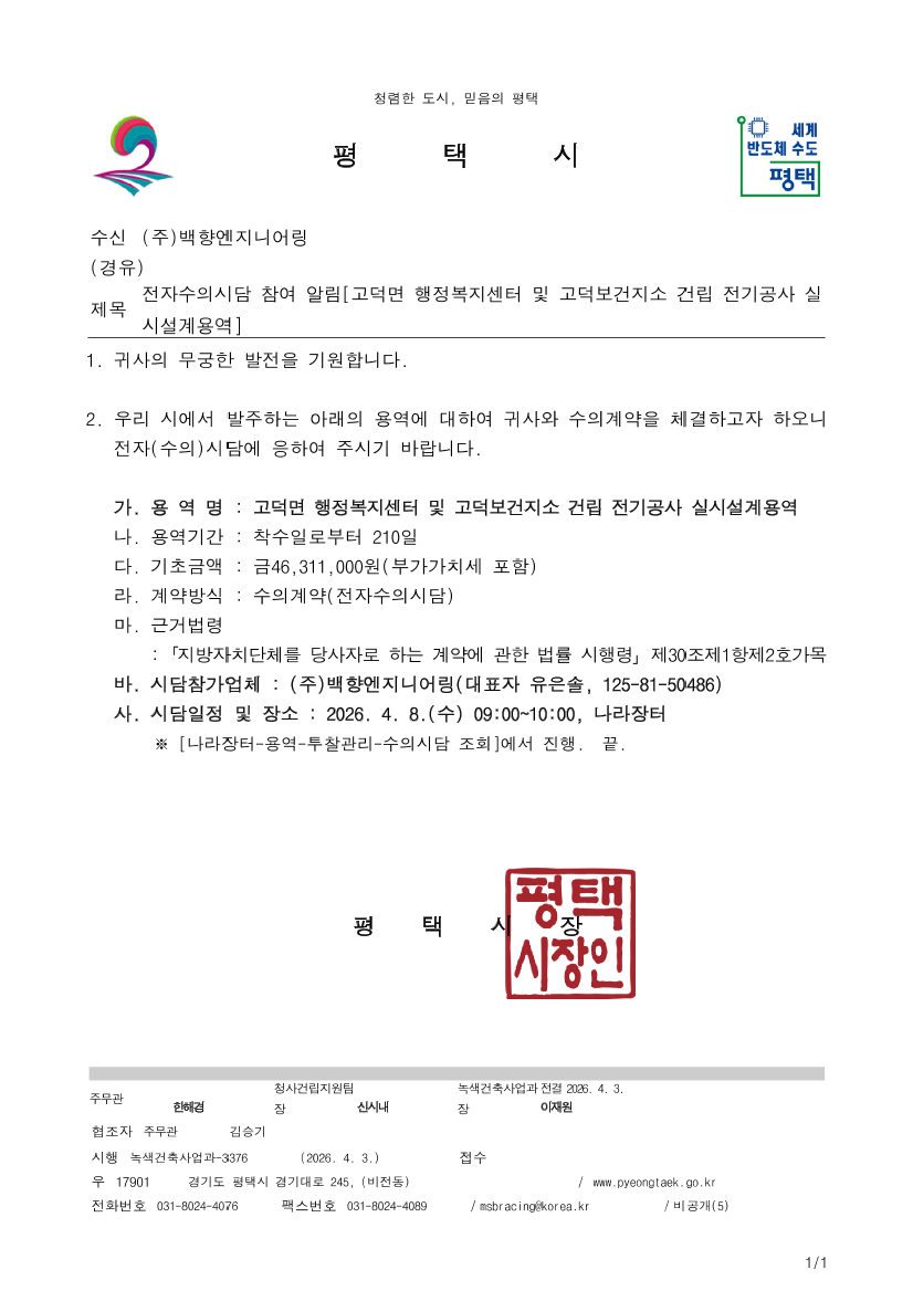 고덕면 행정복지센터 및 고덕보건지소 건립 전기공사 실시설계용역 |