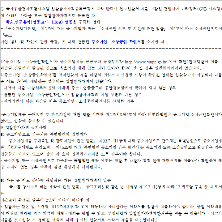 ○ 이 입찰은 국가계약법 시행령 제7조의2제2항에 따라 예정가격을 작성하지 않으며, 사업금액(추정