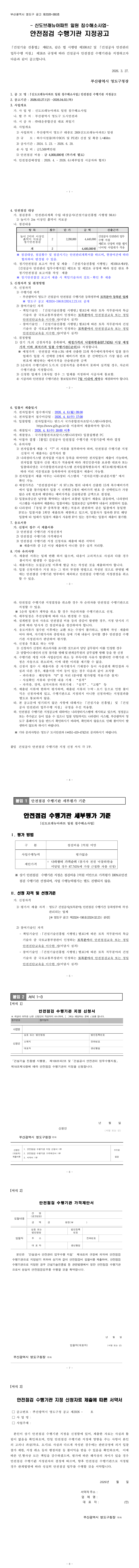 건설공사 안전점검 수행기관 지정공고(신도브래뉴아파트 일원 침수해소사업) |