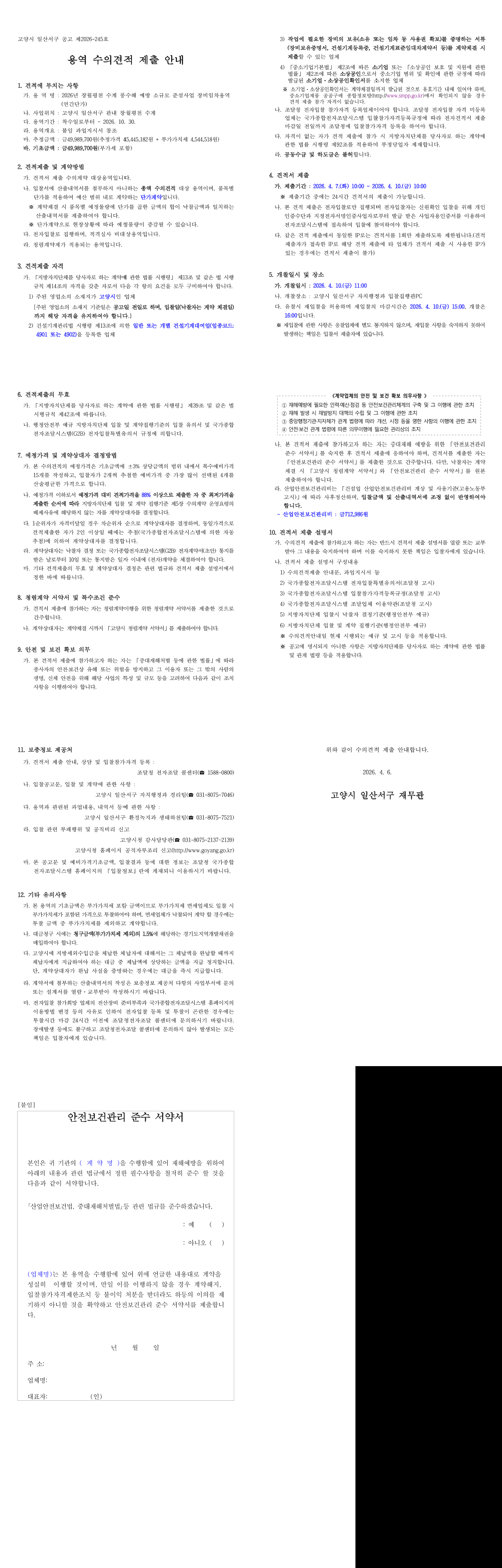 2026년 장월평천 수계 풍수해 예방 소규모 준설사업 장비임차용역(연간단가) |