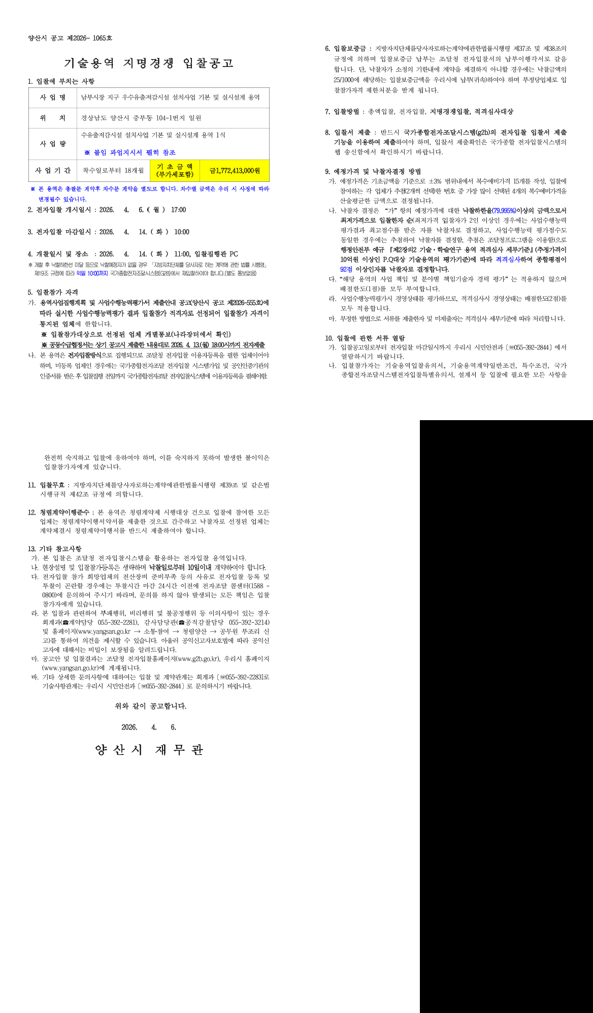 남부시장 지구 우수유출저감시설 설치사업 기본 및 실시설계용역 (가격입찰) |