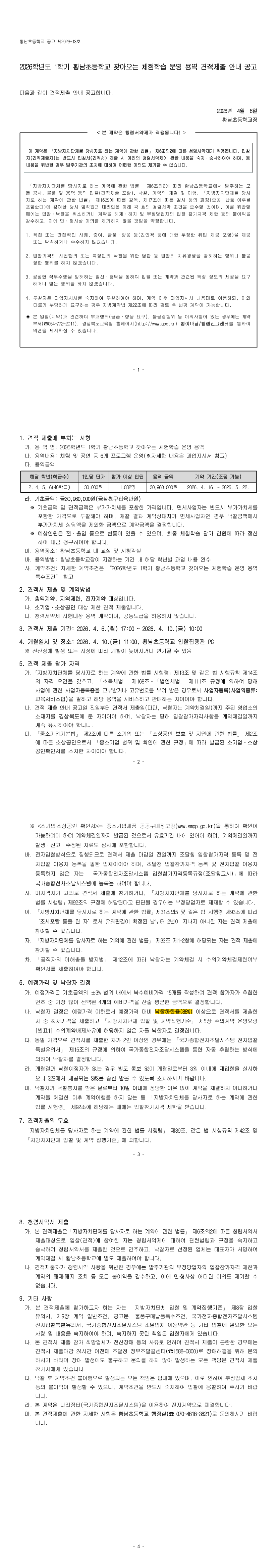 2026학년도 1학기 황남초등학교 찾아오는 체험학습 운영 용역 견적제출 안내 공고 |