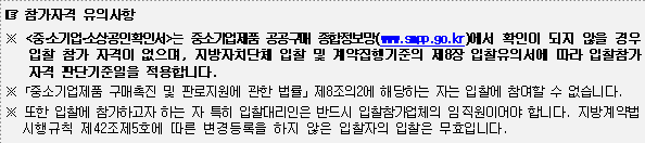 라. 미자격자가 고의로 입찰에 참가하여 지방자치단체를 당사자로 하는 계약에 관한 법률 시행령 제92조 제1항에 해당된다고 판단될 경우에는 관계 규정에 따라 부정당업자로 제재할 수 있습니다.