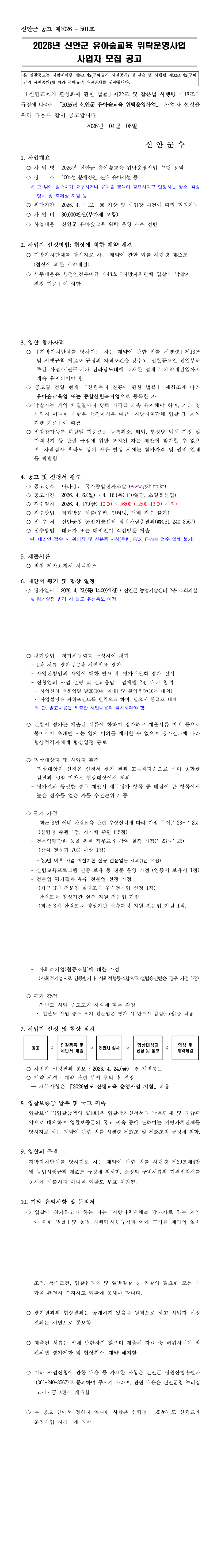 제안서 제출 공고(2026년 신안군 유아숲교육 위탁운영사업 수행 용역) |