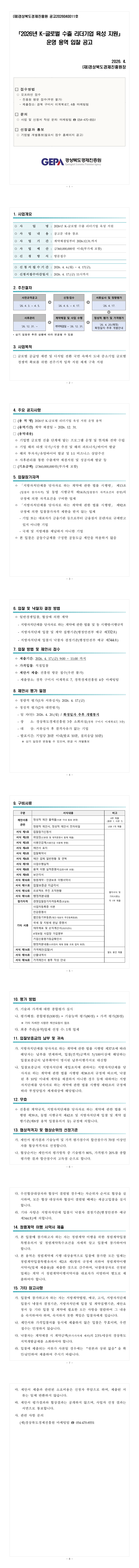 2026년 K-글로벌 수출 리더기업 육성 지원 운영 용역 |