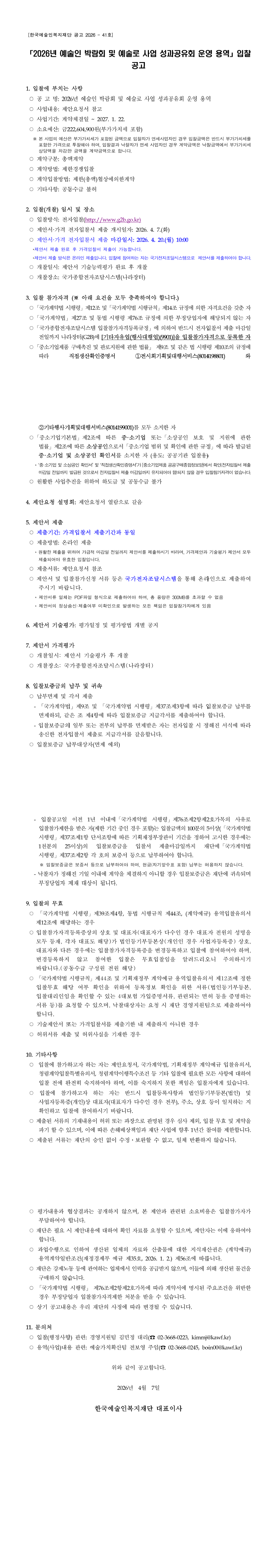 2026년 예술인 박람회 및 예술로 사업 성과공유회 운영 용역 |