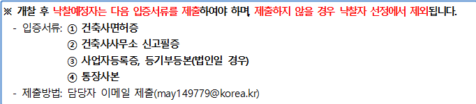 - 입찰안내 및 입찰참가자격등록 : 조달청 콜센터 ☎ 1588-0800