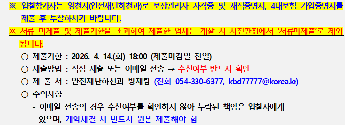 ○ 과업에 관한 문의사항 : 영천시 안전재난하천과 방재팀 (☏ 054-330-6377)