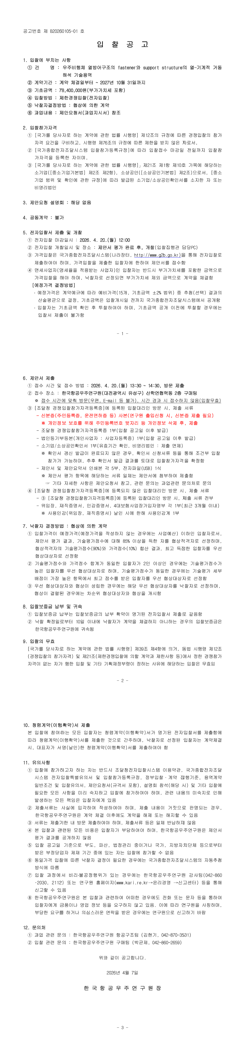 우주비행체 열방어구조의 fastener와 support structure의 열-기계적 거동 해석 기술용역 |