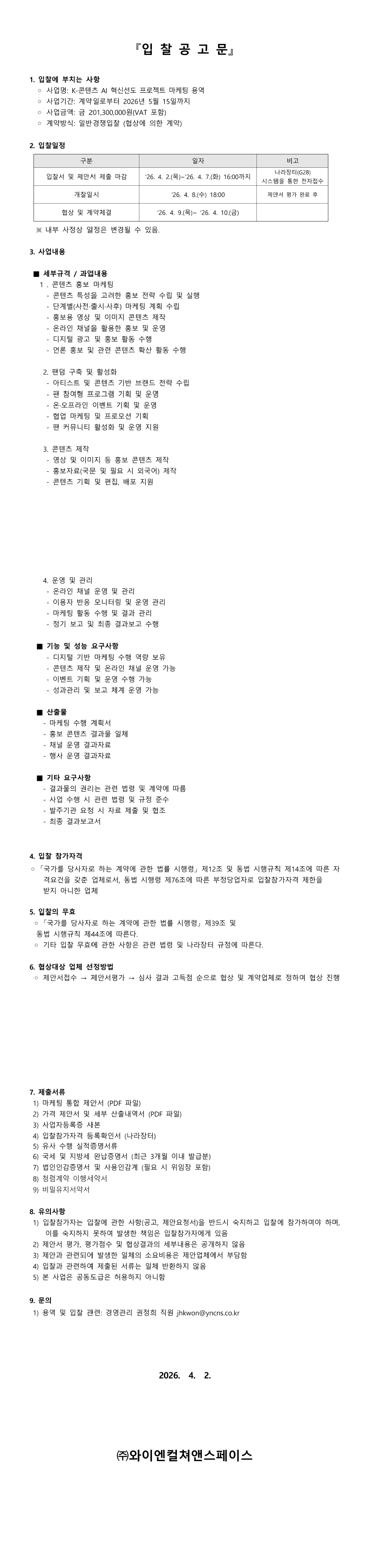 AI 기반 콘텐츠 홍보 및 팬덤 구축 마케팅 용역 계약 |