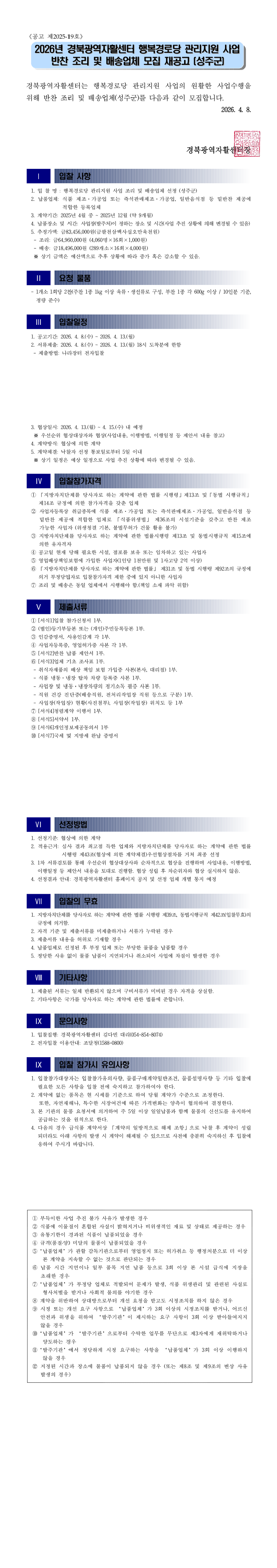 2026년 경북광역자활센터 행복경로당 관리지원 사업 조리 및 배송 업체 선정 입찰(성주군) |