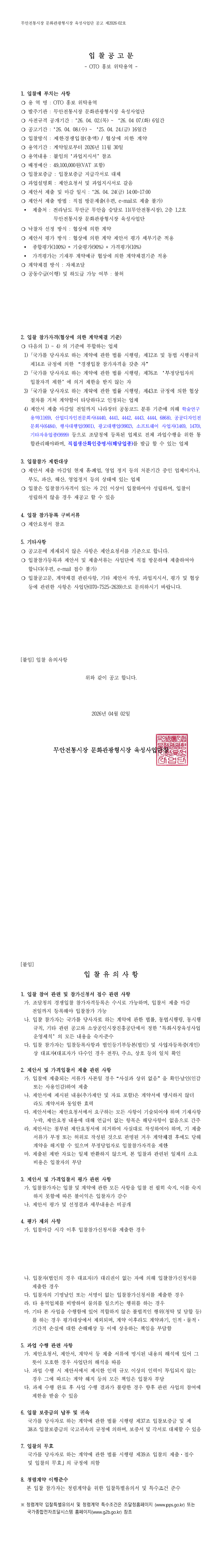 [무안전통시장문화관광형시장육성사업]OTO 홍보 위탁용역 |