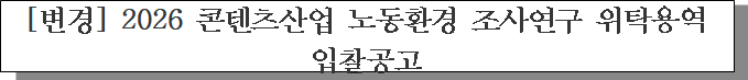ㅇ 입찰건명 : 2026 콘텐츠산업 노동환경 조사연구