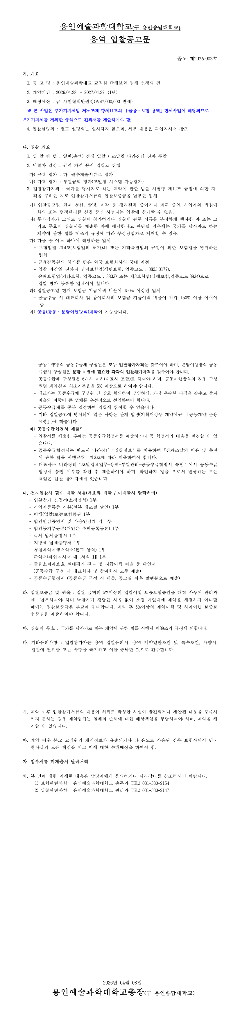 용인예술과학대교 교직원 단체보험 업체 선정 |