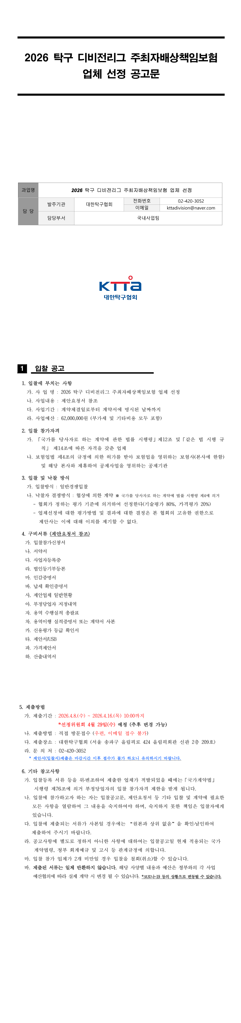 2026 탁구 디비전리그 주최자배상책임보험 |