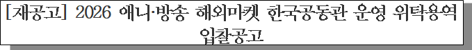 ㅇ 입찰건명 : 2026 애니·방송 해외마켓 한국공동관 운영 위탁용역