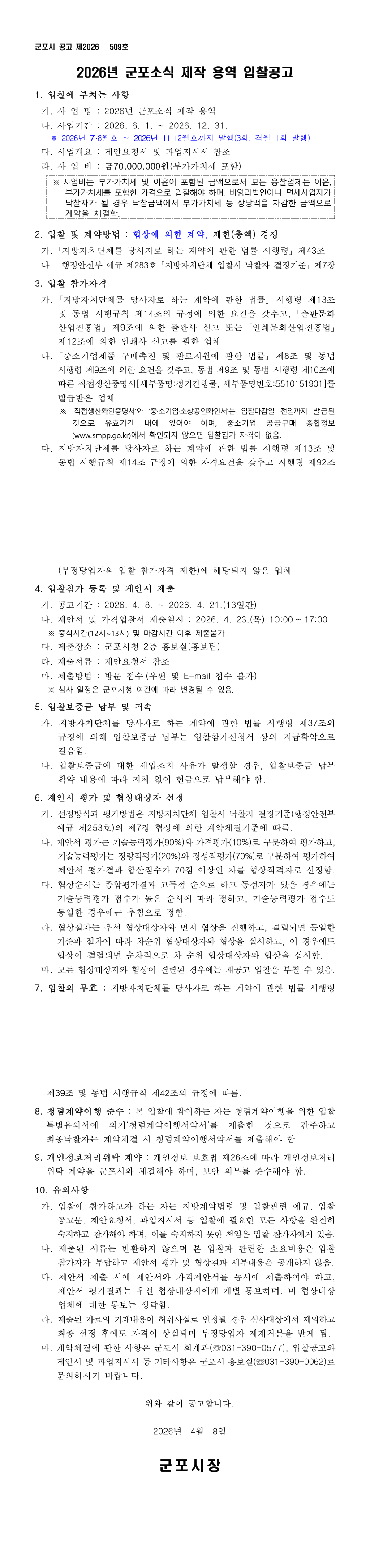 2026년 군포소식 제작 용역(협상에 의한 계약) |