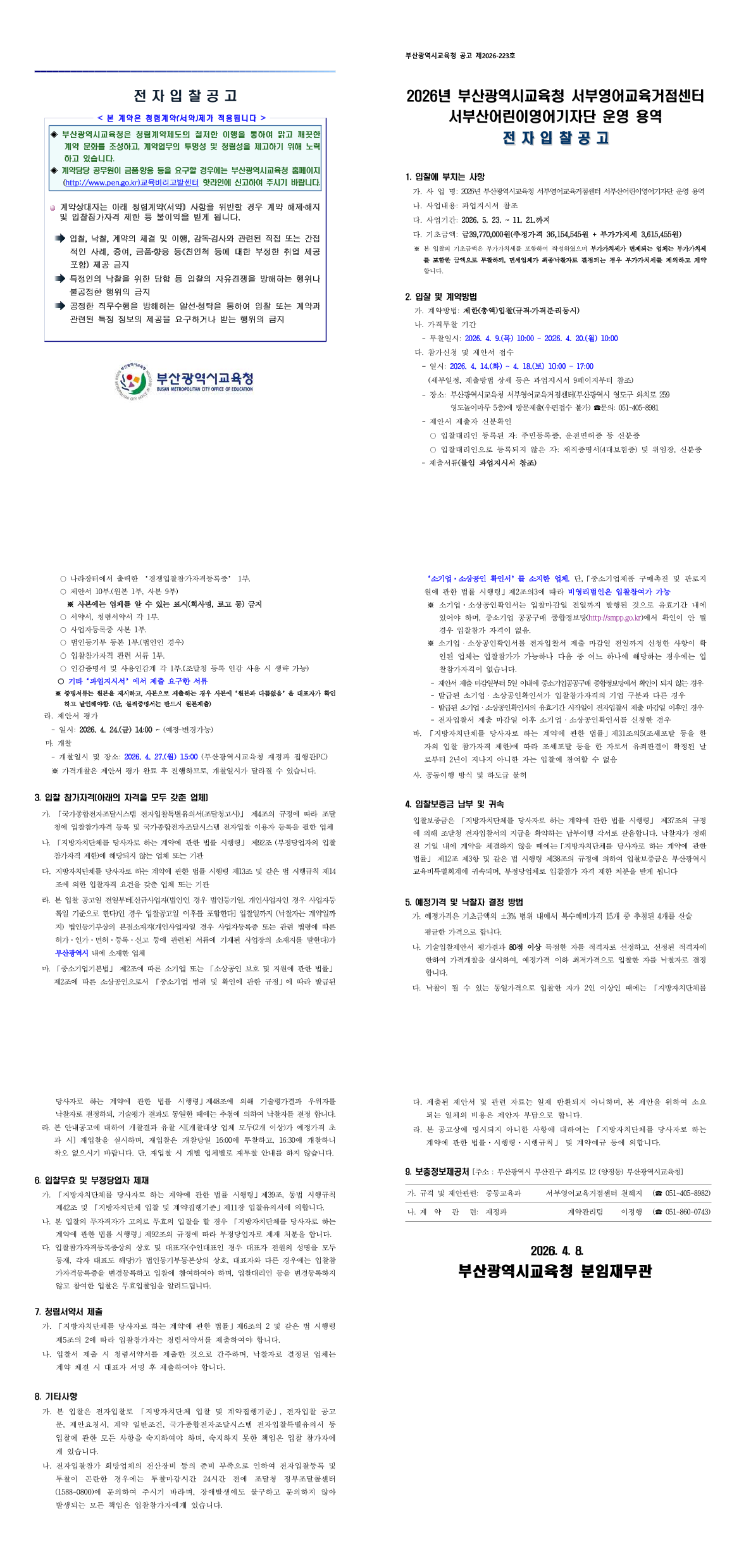 2026년 부산광역시교육청 서부영어교육거점센터 서부산어린이영어기자단 운영 용역 |
