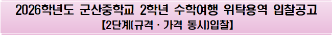 ◦ 2026학년도 군산중학교 2학년 수학여행 위탁용역