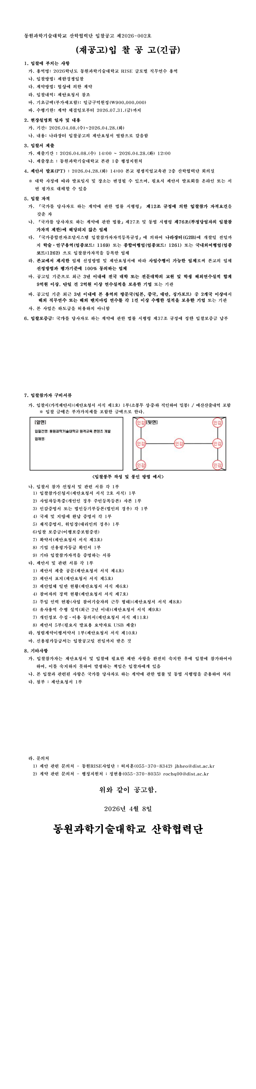 2026학년도 동원과학기술대학교 RISE 글로벌 직무연수 용역 |