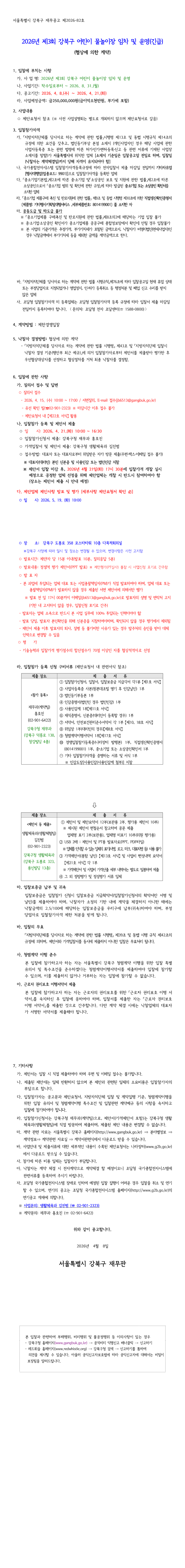 2026년 제3회 강북구 어린이 물놀이장 임차 및 운영 용역 |