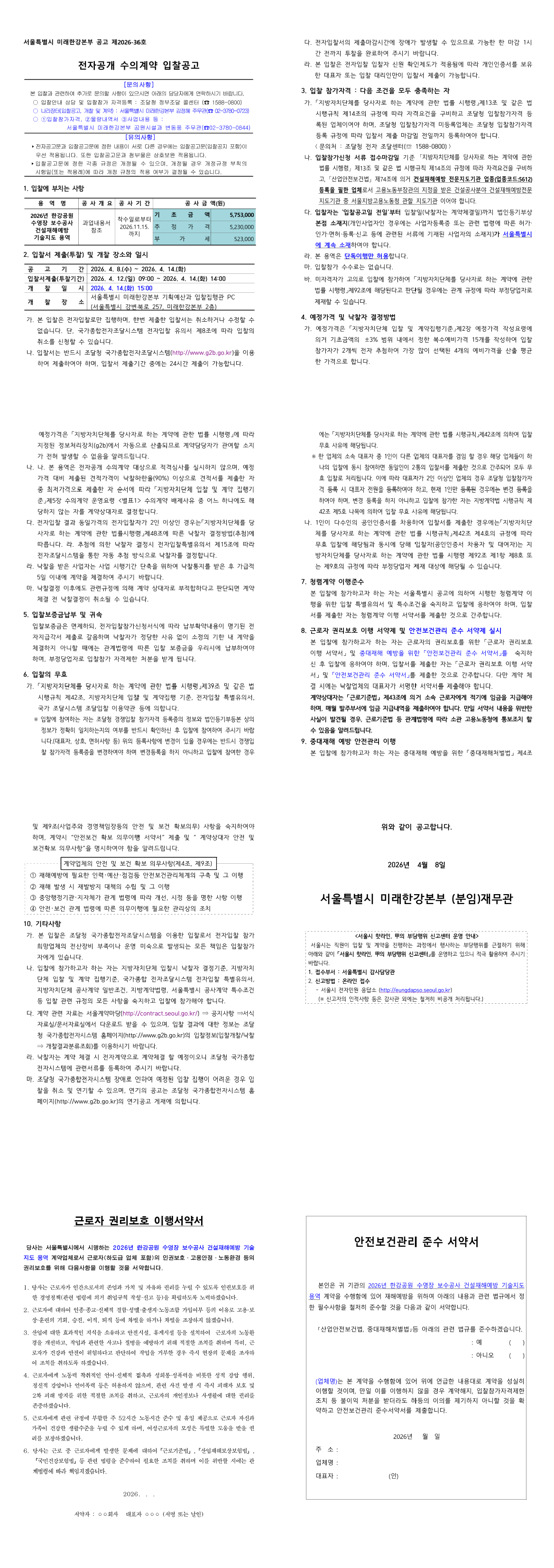 2026년 한강공원 수영장 보수공사 건설재해예방 기술지도 용역 |