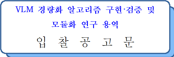 1. 입 찰 명 : VLM 경량화 알고리즘 구현·검증 및 모듈화 연구 용역