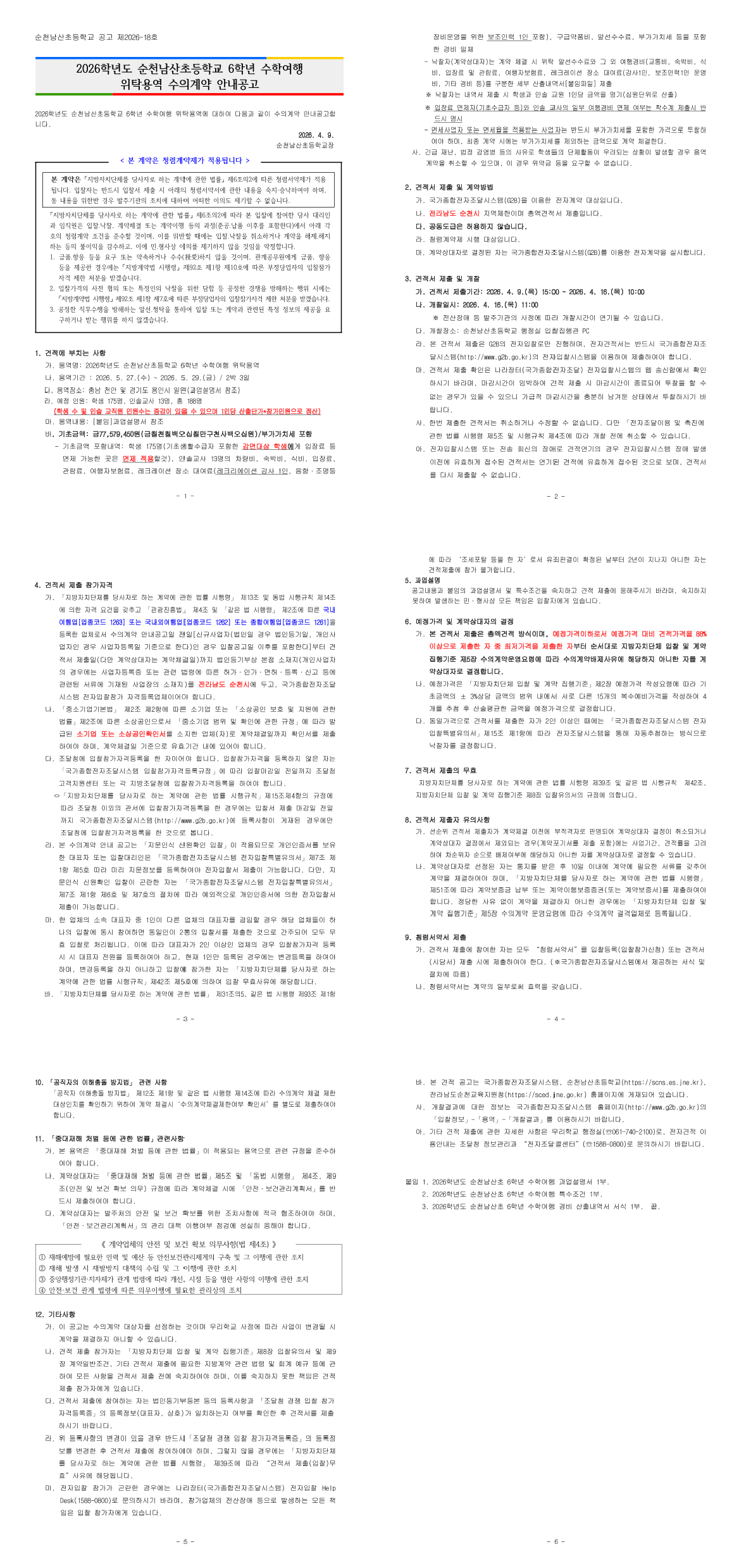 2026학년도 순천남산초등학교 6학년 수학여행 위탁용역 수의계약 안내 공고 |