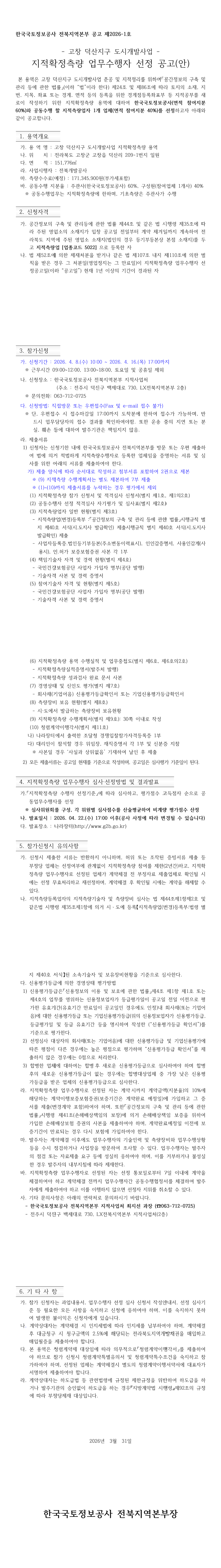 고창 덕산지구 도시개발사업 지적확정측량 업무수행자 선정 |