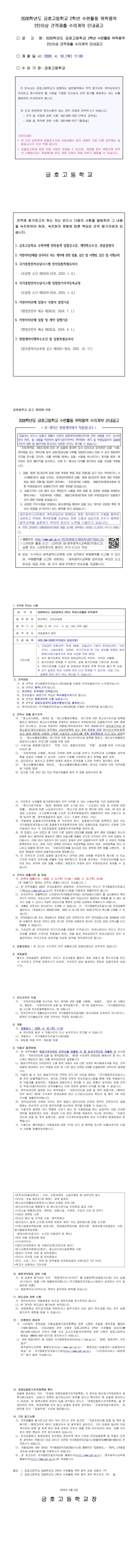금호고등학교 2026학년도 2학년 수련활동 위탁용역 수의계약 견적 공고 |