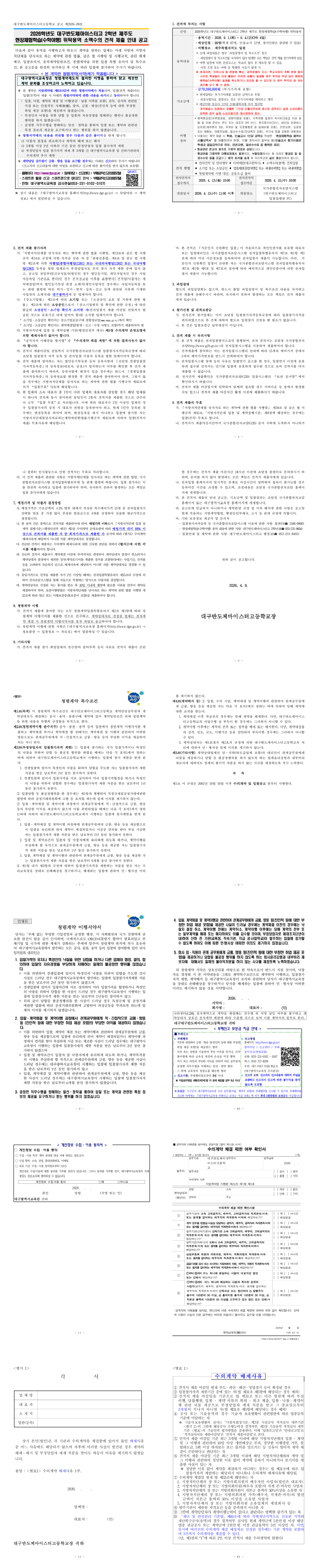 2026학년도 대구반도체마이스터고 2학년 제주도 현장체험학습(수학여행) 위탁용역 소액수의 견적 제출 안내 공고 |