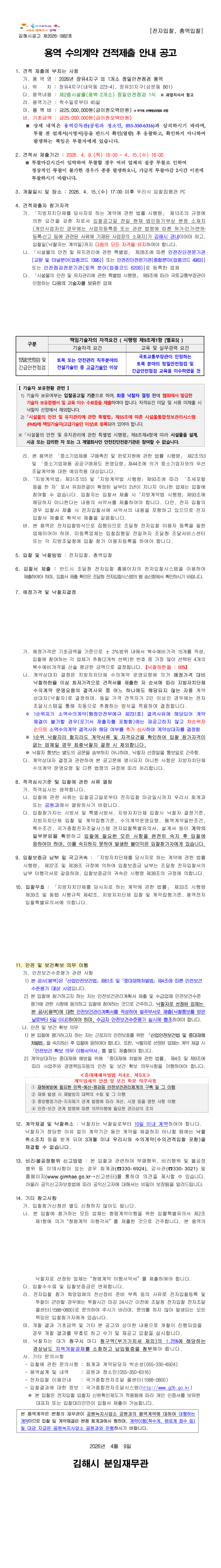 2026년 장유4지구 외 1개소 정밀안전점검 용역 |