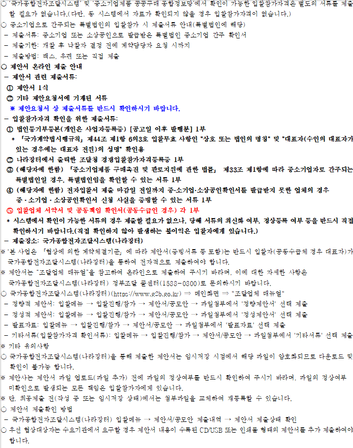 계약담당공무원의 평가일정 안내 이후 나라장터에서 제안발표 순서를 확인하시기 바랍니다. 자세한 사항