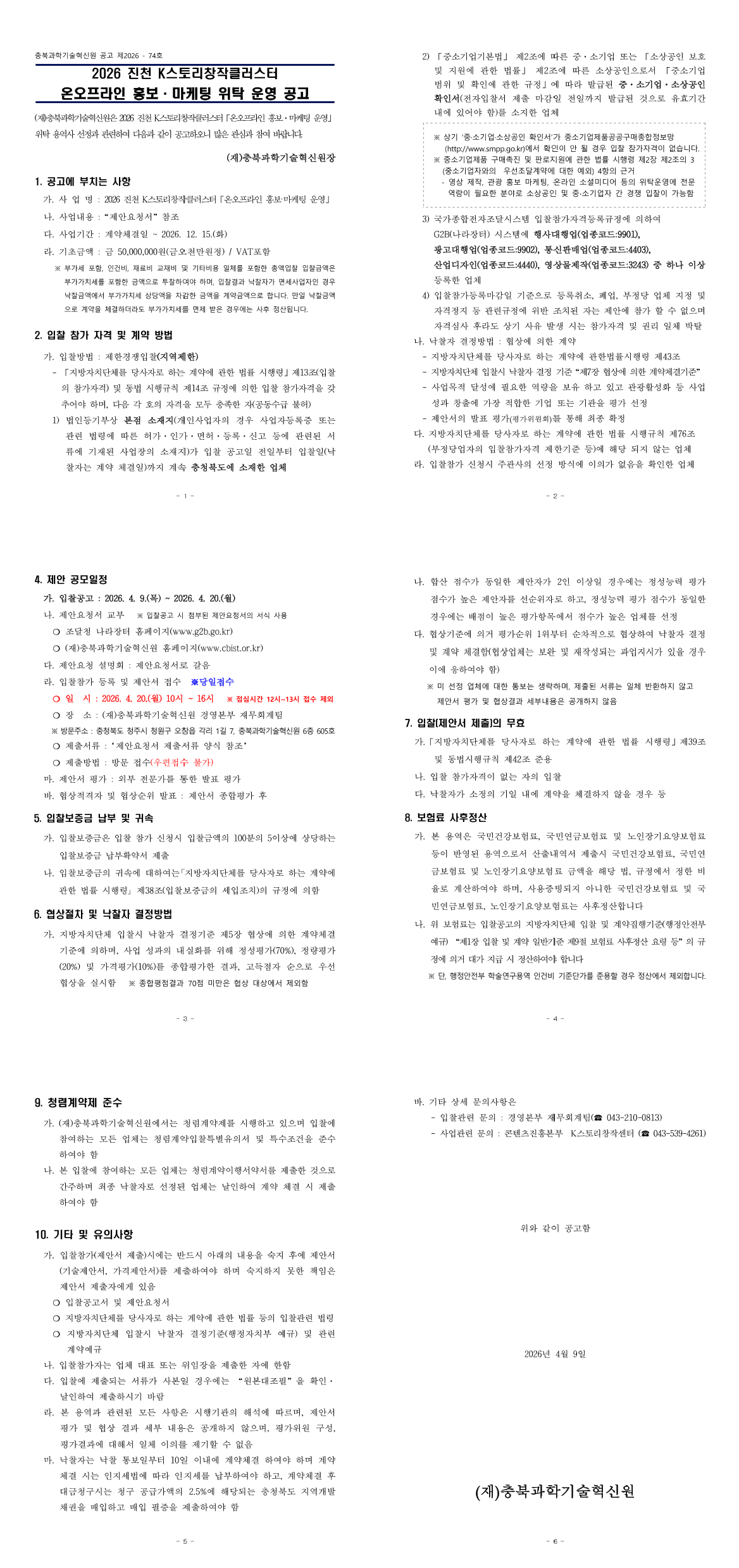 2026 진천 K스토리창작클러스터 온오프라인 홍보·마케팅 운영 용역 |