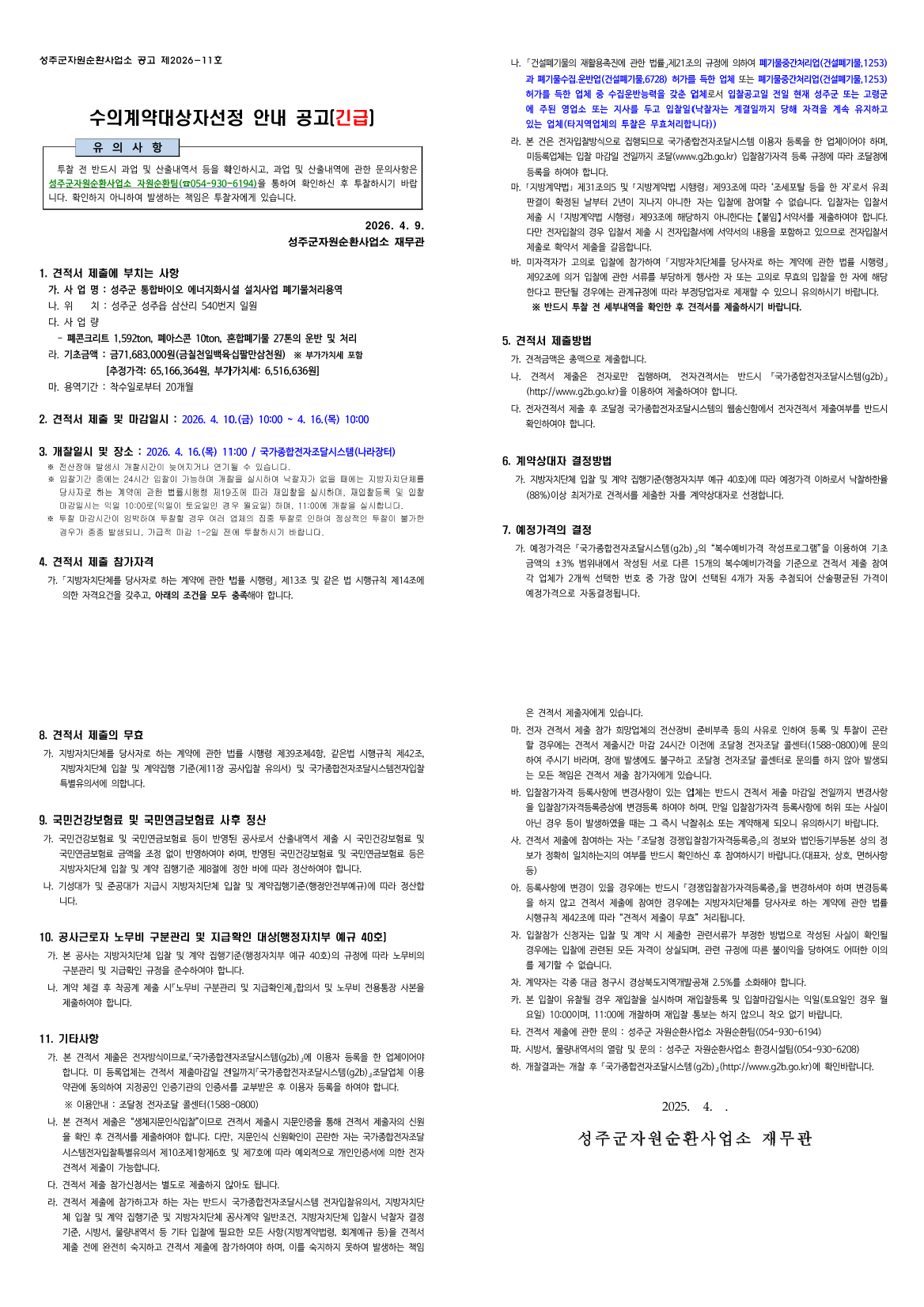 성주군 통합바이오 에너지화시설 설치사업 폐기물처리용역 시행 |