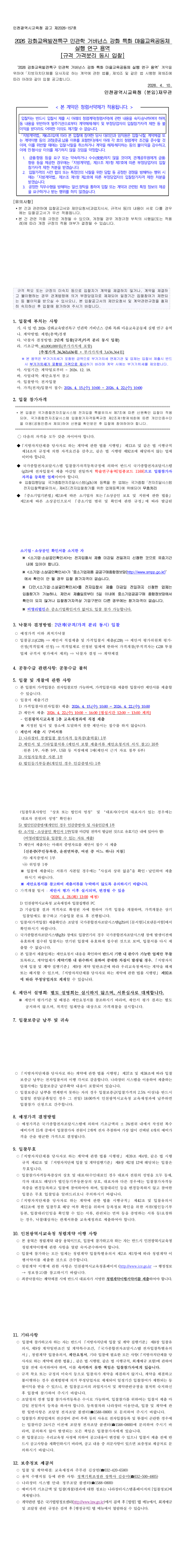 2026 강화교육발전특구 민관학 거버넌스 강화 특화 마을교육공동체 실행 연구 용역 |