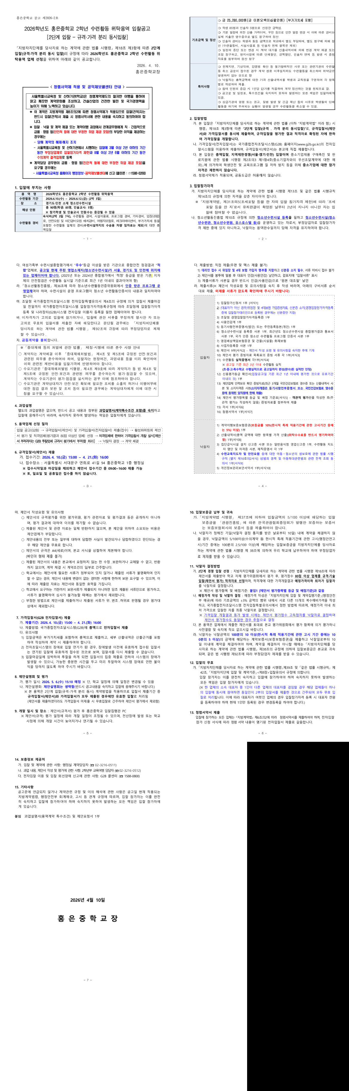 2026학년도 홍은중학교 2학년 수련활동 위탁 용역 |