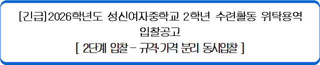 ▣ 2026학년도 성신여자중학교 2학년 수련활동 위탁용역