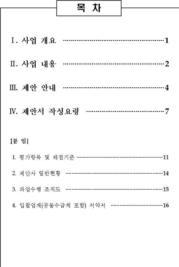 ◦ 제출된 제안서는 사업자 선정여부와 관계없이 반환되지 않음