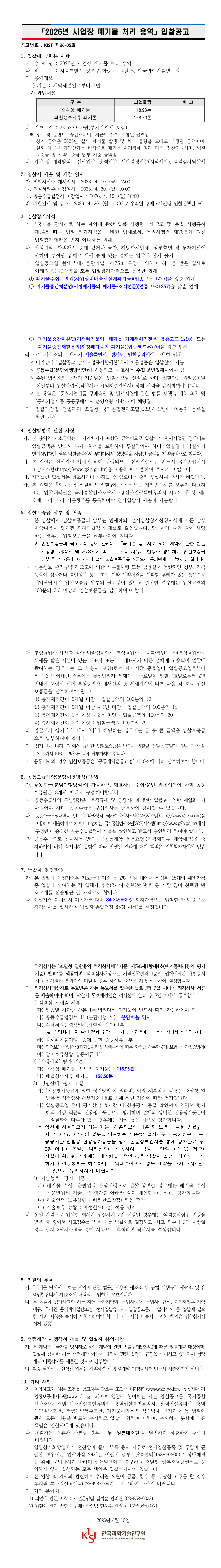 2026년 사업장 폐기물 처리 용역 |