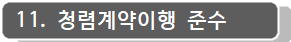 11.1 본 계약은 청렴계약제 시행대상 건으로서 입찰에 참가하는 모든 업체는 우리 공단 청렴계약 입찰특별유의서 제2조 제1항의 규정에 의거 입찰참가신청서 제출 시 청렴계약 이행각서(첨부파일)에 동의하여야 합니다.
