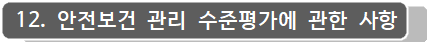 12.2 「중대재해 처벌 등에 관한 법률 시행령」 제4조, 제10조 및 「산업안전보건법」 제61조에 따라 낙찰자를 대상으로 안전보건수준 평가를 시행하며, 입찰 공고 시 첨부된 평가기준에 따라 적합으로 판정된 경우 최종 낙찰자로 결정합니다. *[첨부4] 참고