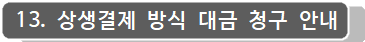 13.3 낙찰자가 상생결제 방식으로 선금 및 대금을 청구하고자 하는 경우 계약체결 시 은행이 발급하는 상생결제 약정에 관한 확인서를 제출하셔야 합니다.