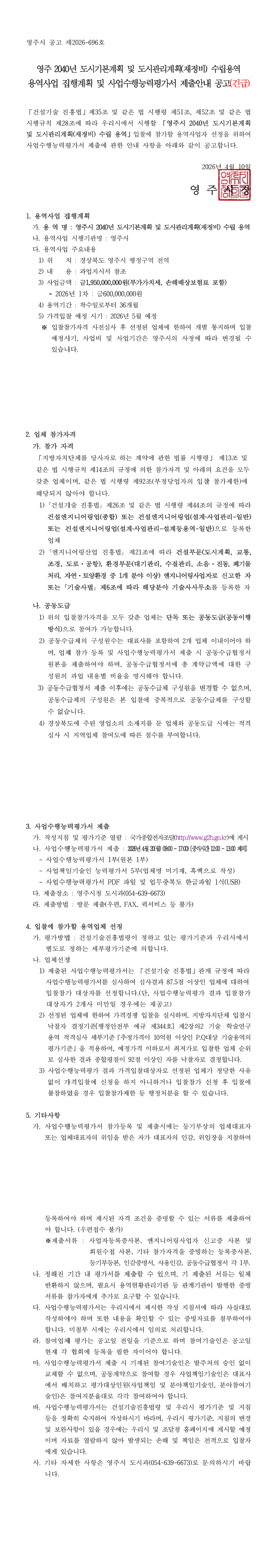 [사업수행능력평가서 제출 안내] 2040년 영주 도시기본계획 및 도시관리계획(재정비) 수립 용역 |